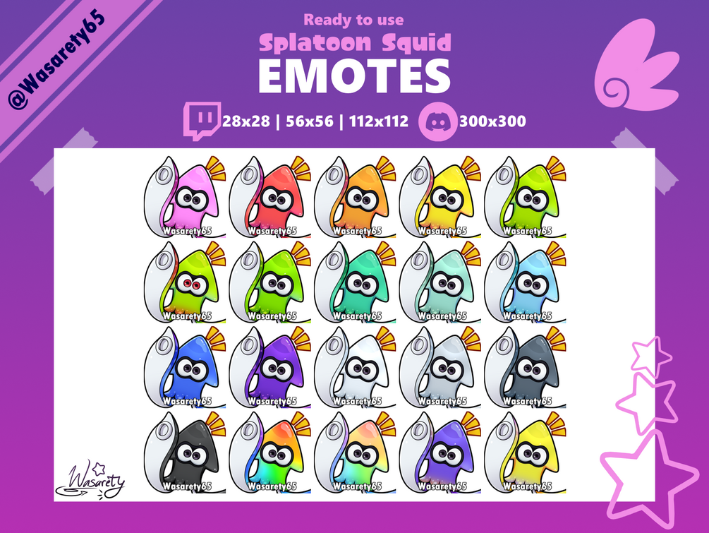 Premade Splatoon Squids Emotes set ready to use on Discord and Twitch.